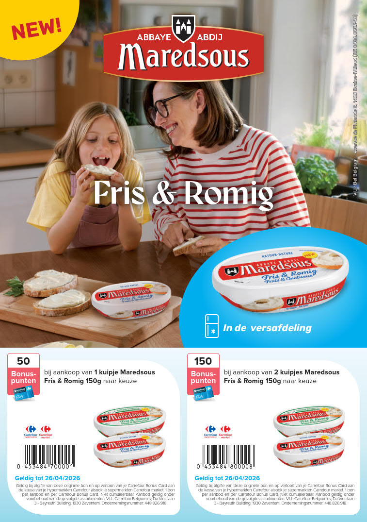 Blijf op de hoogte van de beste deals en promoties bij Carrefour door onze wekelijkse folders te bekijken, geldig vanaf 30 maart tot 26 april. Op onze website kun je niet alleen de folders van Carrefour vinden, maar ook de meningen van andere gebruikers lezen en je eigen mening delen over de producten die je hebt gekocht. Mis geen enkele speciale actie van Carrefour en bekijk alle folders van Carrefour geldig vanaf 30 maart tot 26 april. Wil je altijd als eerste op de hoogte zijn van de beste deals bij Carrefour? Abonneer je dan op onze wekelijkse nieuwsbrief en ontvang alle nieuwe updates en promoties voor allerlei producten uit de verschillende folders. Bespaar geld met de kortingen bij Carrefour, en bekijk ook de folders van andere winkels om te vergelijken en nooit meer een goede deal te missen. Ga nu snel naar onze website om de laatste nieuwe folders en exclusieve promoties van verschillende winkels te bekijken en schrijf je in voor onze nieuwsbrief!