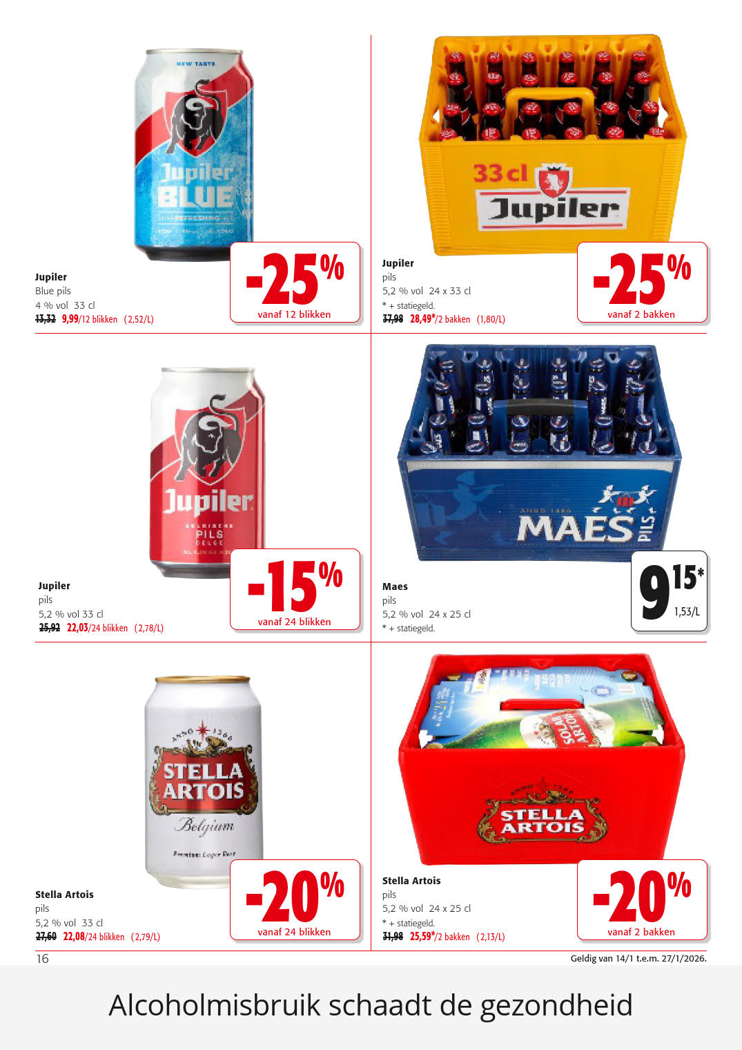 Blijf op de hoogte van de beste deals en promoties bij Colruyt door onze wekelijkse folders te bekijken, geldig vanaf 14 januari tot 27 januari. Op onze website kun je niet alleen de folders van Colruyt vinden, maar ook de meningen van andere gebruikers lezen en je eigen mening delen over de producten die je hebt gekocht. Mis geen enkele speciale actie van Colruyt en bekijk alle folders van Colruyt geldig vanaf 14 januari tot 27 januari. Wil je altijd als eerste op de hoogte zijn van de beste deals bij Colruyt? Abonneer je dan op onze wekelijkse nieuwsbrief en ontvang alle nieuwe updates en promoties voor allerlei producten uit de verschillende folders. Bespaar geld met de kortingen bij Colruyt, en bekijk ook de folders van andere winkels om te vergelijken en nooit meer een goede deal te missen. Ga nu snel naar onze website om de laatste nieuwe folders en exclusieve promoties van verschillende winkels te bekijken en schrijf je in voor onze nieuwsbrief!