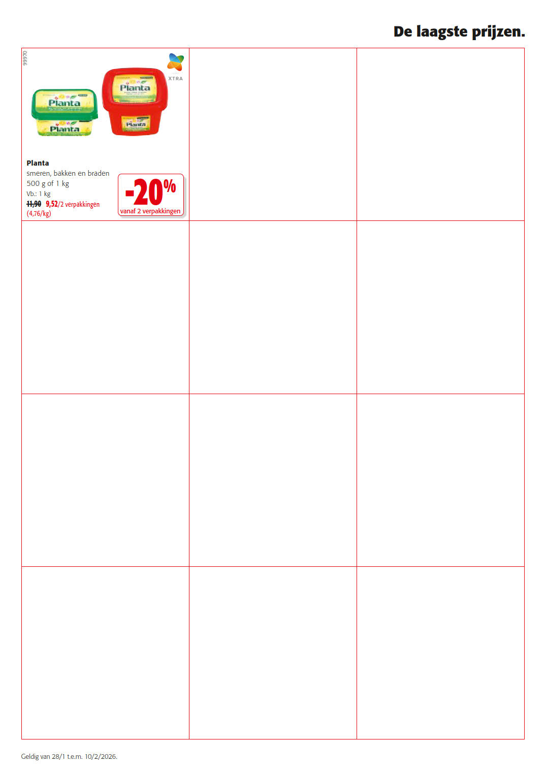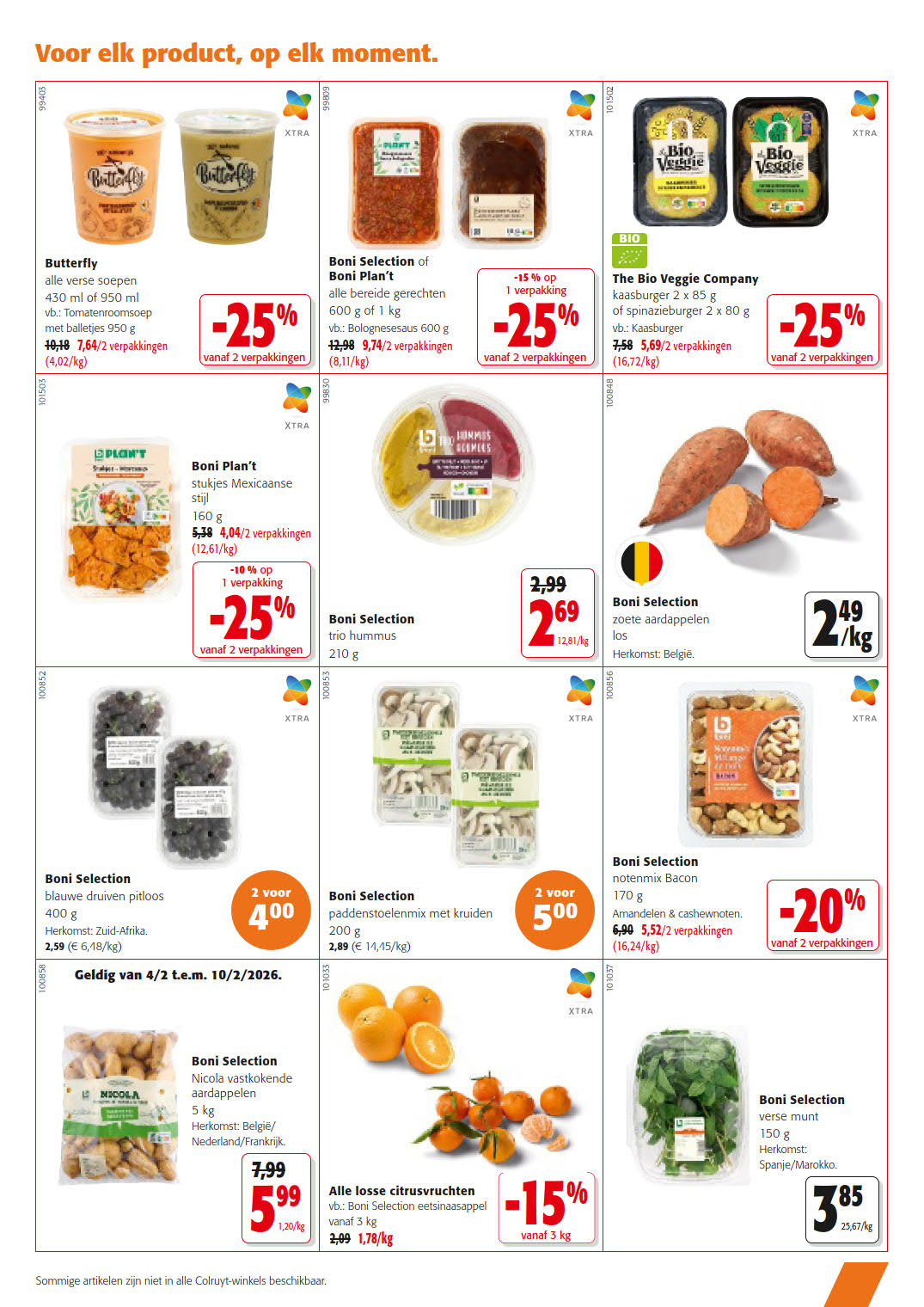 Blijf op de hoogte van de beste deals en promoties bij Colruyt door onze wekelijkse folders te bekijken, geldig vanaf 28 januari tot 10 februari. Op onze website kun je niet alleen de folders van Colruyt vinden, maar ook de meningen van andere gebruikers lezen en je eigen mening delen over de producten die je hebt gekocht. Mis geen enkele speciale actie van Colruyt en bekijk alle folders van Colruyt geldig vanaf 28 januari tot 10 februari. Wil je altijd als eerste op de hoogte zijn van de beste deals bij Colruyt? Abonneer je dan op onze wekelijkse nieuwsbrief en ontvang alle nieuwe updates en promoties voor allerlei producten uit de verschillende folders. Bespaar geld met de kortingen bij Colruyt, en bekijk ook de folders van andere winkels om te vergelijken en nooit meer een goede deal te missen. Ga nu snel naar onze website om de laatste nieuwe folders en exclusieve promoties van verschillende winkels te bekijken en schrijf je in voor onze nieuwsbrief!